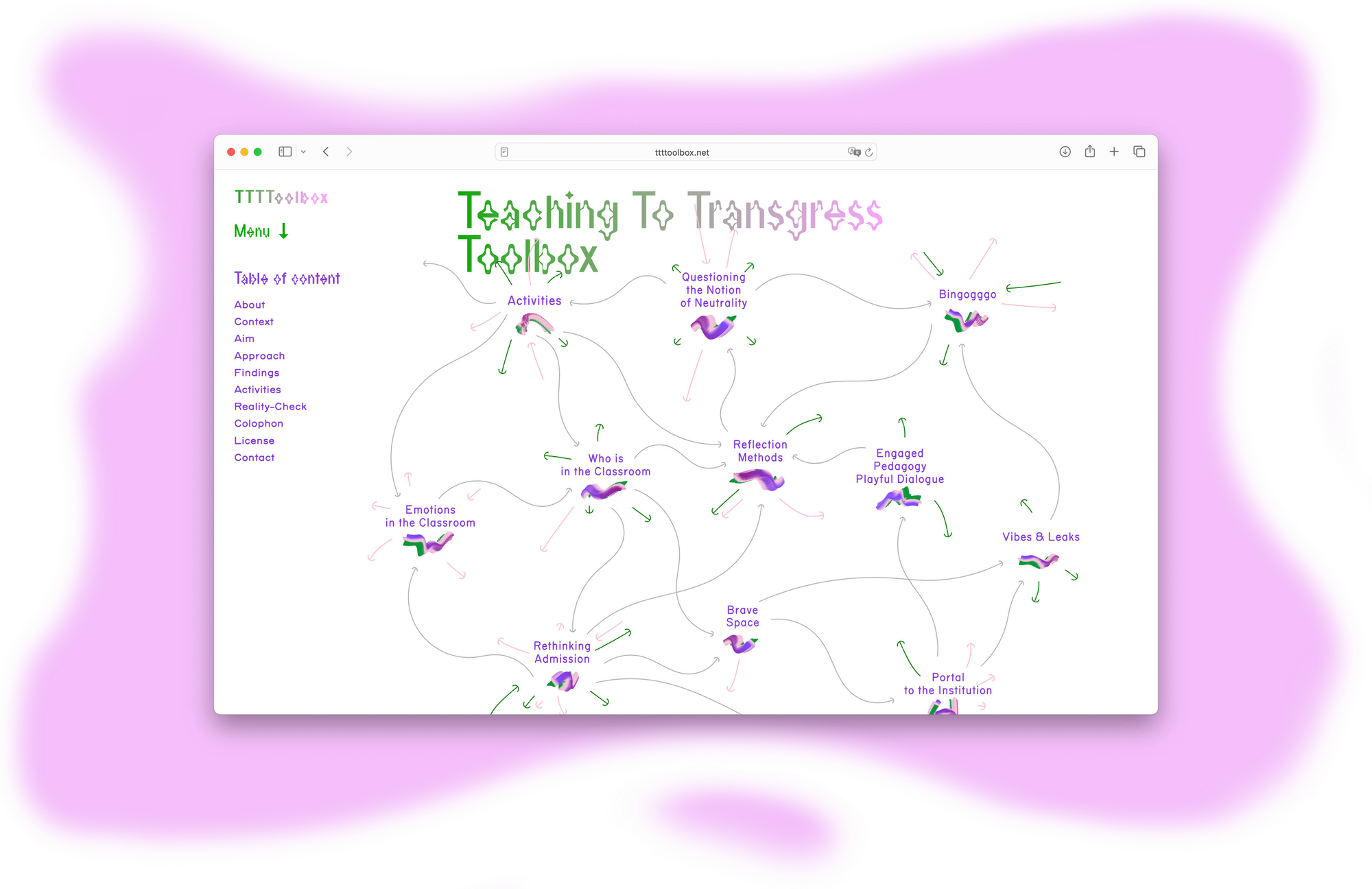 This application then led to the Teaching To Transgress Toolbox which ran from 2019–2022, right? What was the idea behind the project?